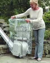 All metal parts are aluminium, oil annealed or zinc plated to prevent rusting. Metal parts are resilient to the harshness of salt air, making them ideal for those located nearthe seaside. Plastic parts are heat and UV resistant protecting the stairlift from discouloration and heat damage. The stairlift ncludes a durable plastic cover that will keep off snow, leaves and bird droppings!